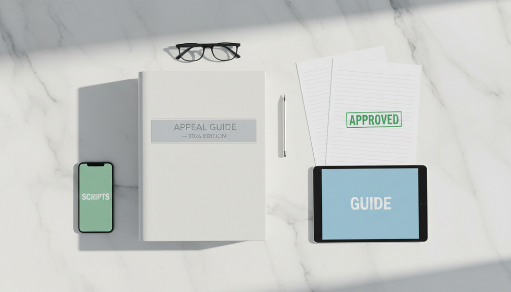 31-Page Appeal Guide — your complete, step-by-step playbook • 9 Doctor-Ready Documents & Templates — including LMN, Step-Therapy Exception, Prior Authorization Appeal, supporting documentation sheets, and submission checklists • 12 Follow-Up Scripts — insurance phone scripts, provider prompts, HR escalation messages, and portal templates • 4 Tracking & Prep Tools — documentation checklist, deadline tracker, submission log, and coverage-criteria worksheet • 1 Quick-Start Sheet — build an approval-ready packet in under an hour