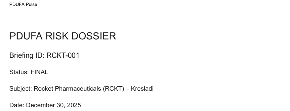 This dossier is a short regulatory risk briefing on Rocket Pharmaceuticals’ gene therapy Kresladi, ahead of its March 28, 2026 PDUFA decision.